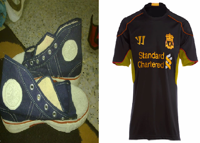 Baju cap ayam dan corak permainan sampah= Liverpool FC